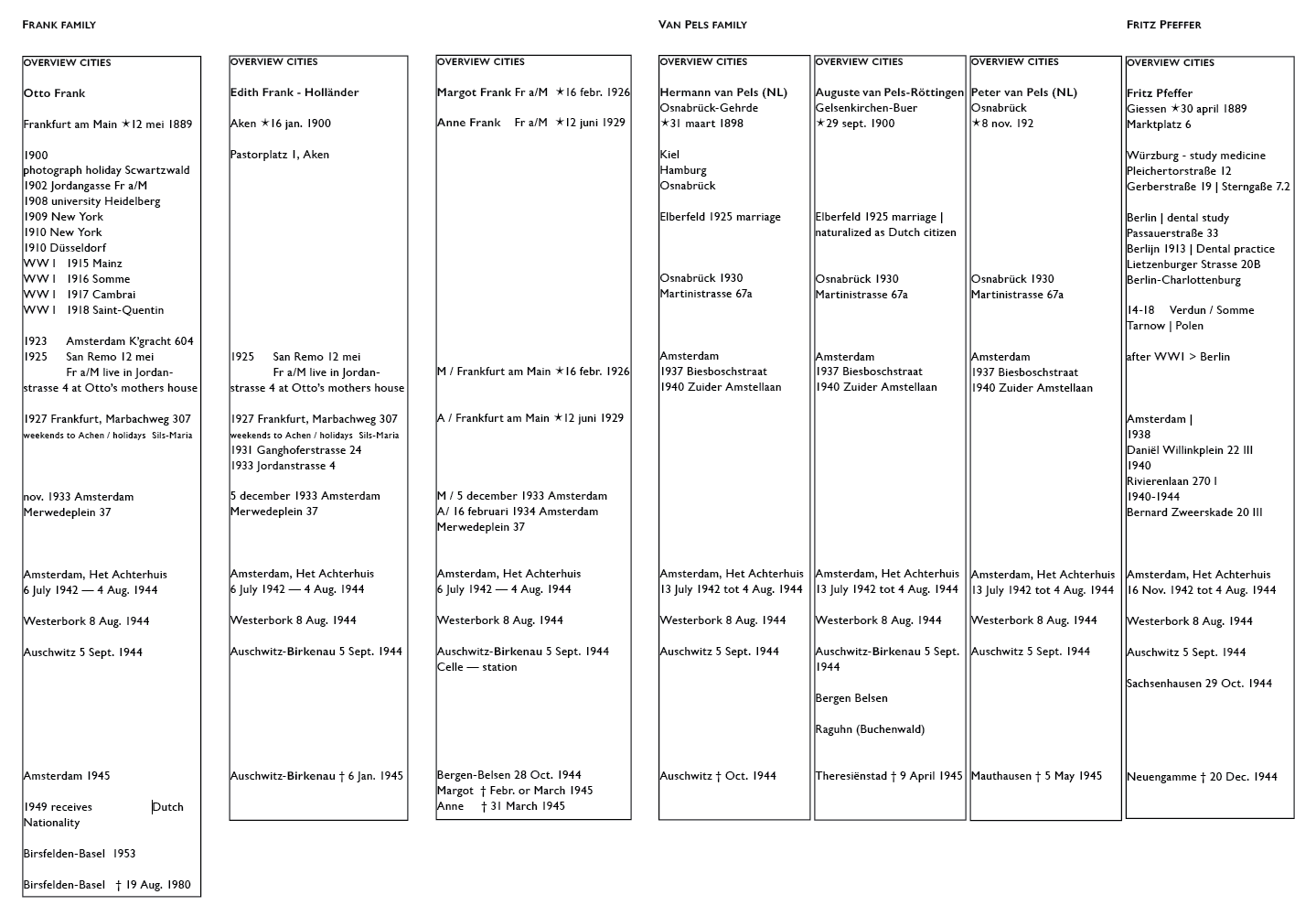 Despite their later statelessness — the eight Jewish people in hiding in The Secret Annex were actually German citizens whose “Heimat” was the Federal Republic of Germany and whose families were deeply rooted IN and had a very long relationship WITH the country. This fact and because ALL of them were born in Germany and died there (except for mr Otto Frank) and the fact that there’s a huge potential audience to be reached, these facts are the reasons for focusing on the positioning of the Schicksal Project in Germany.